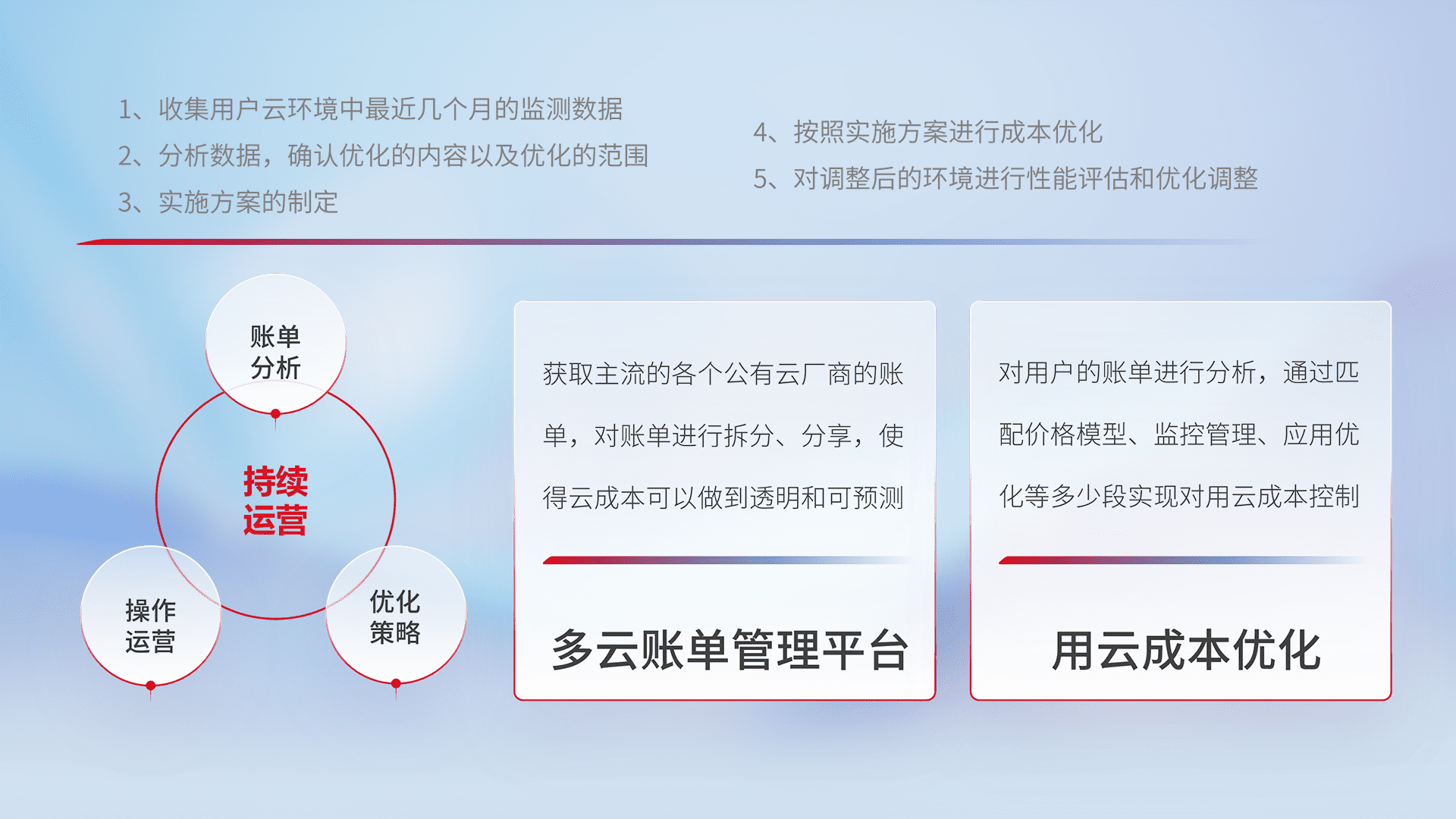 监控业务系统资源开销,,,对资源的消耗精确计量,,实现费用的透明化管理,,,,不断提升资源使用率,,,,调整资源购买方式,,降低资源费用成本,,用云成本可预测、、用云费用可优化,,,云资源配额有据可依。。